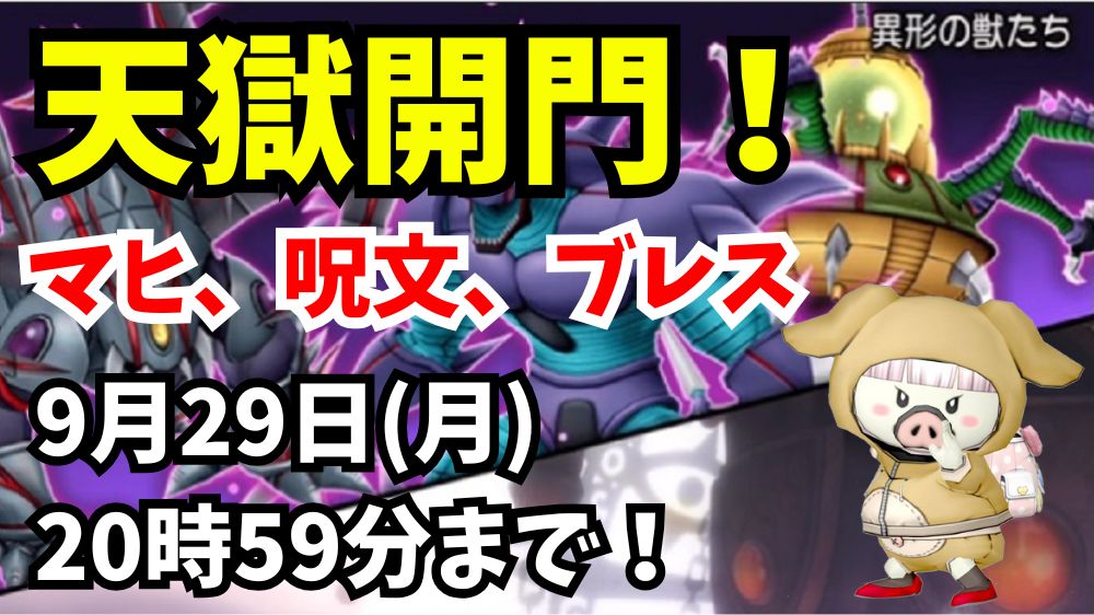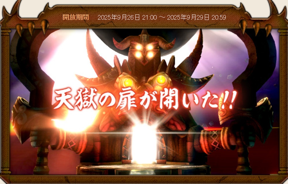 天獄の開放期間は、9月29日(月)20時59分までブヒ