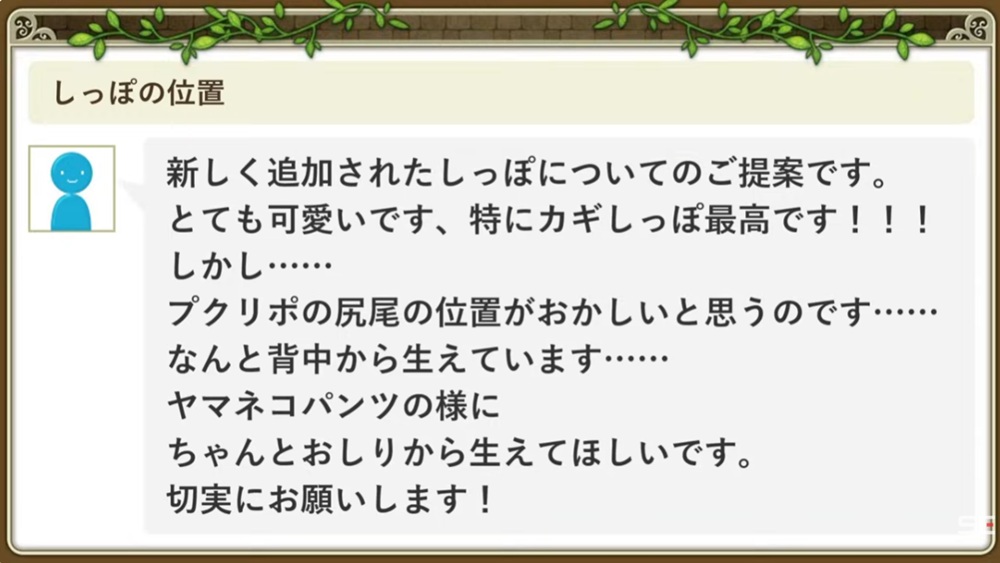 プクリポの背中しっぽがちゃんとしっぽの位置に!