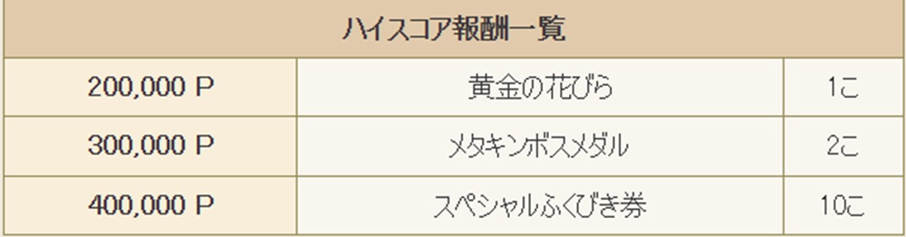 参加メンバー全員でゲットしたスコアの合計が規定のスコア以上になると、「ハイスコア記念品」がもらえるブヒ🐷
