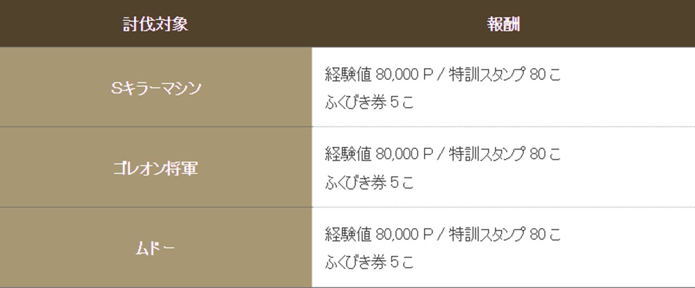 コインやカードは不要で、討伐報酬の赤宝箱が、1個出現する