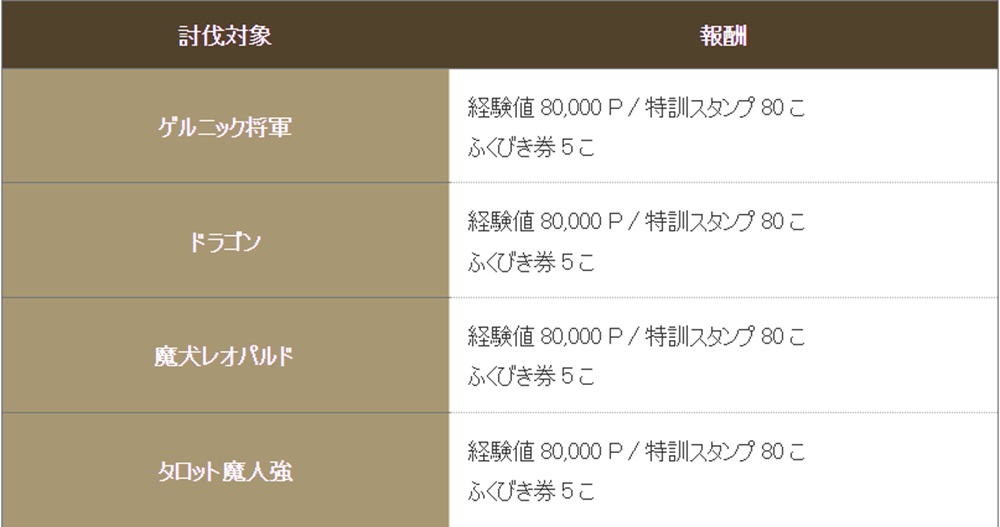経験値8万と福引券5枚の報酬は初回しかもらえないが、お題のお供え物を持っていれば何度も挑戦できる