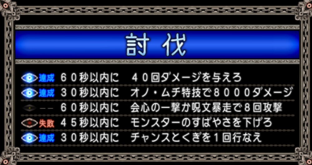 60秒以内に会心の一撃か呪文暴走で8回攻撃