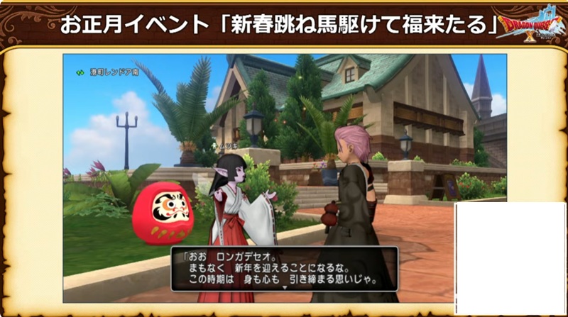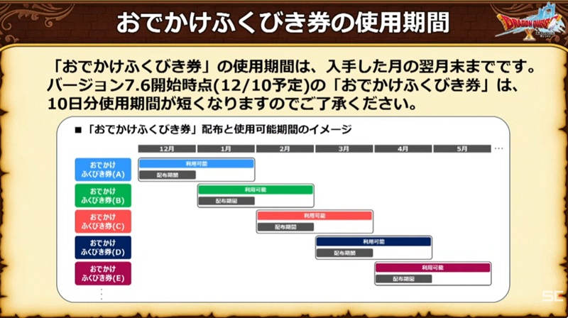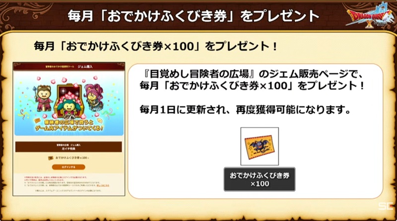 ミッション期間中に『ドラゴンクエストX オンライン』にログインすると、「おでかけふくびき券」を獲得できる