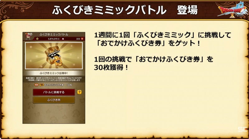 1週間に1回、「ふくびきミミック」に挑戦して、「おでかけふくびき券」を30枚獲得できる