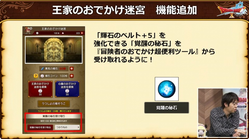 「輝石のベルト+5」を強化できる「覚醒の秘石」を『冒険者のおでかけ超便利ツール』から受け取れるようになる