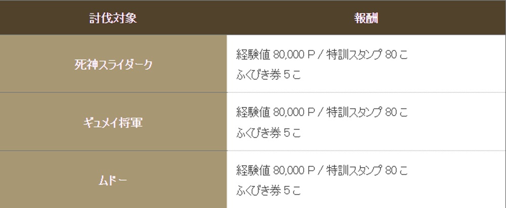 経験値8万と福引券5枚の報酬は初回しかもらえないが、お題のお供え物を持っていれば何度も挑戦できる