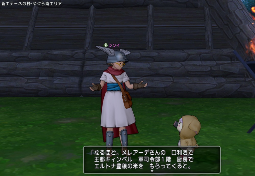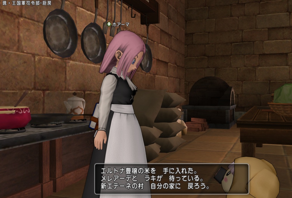 大エテーネ島 現・キィンベル・軍区画に移動し、現・王国軍司令部1階B-5 厨房にいるホアーマに話しかけると、エルトナ豊穣の米がもらえるブヒ🐷