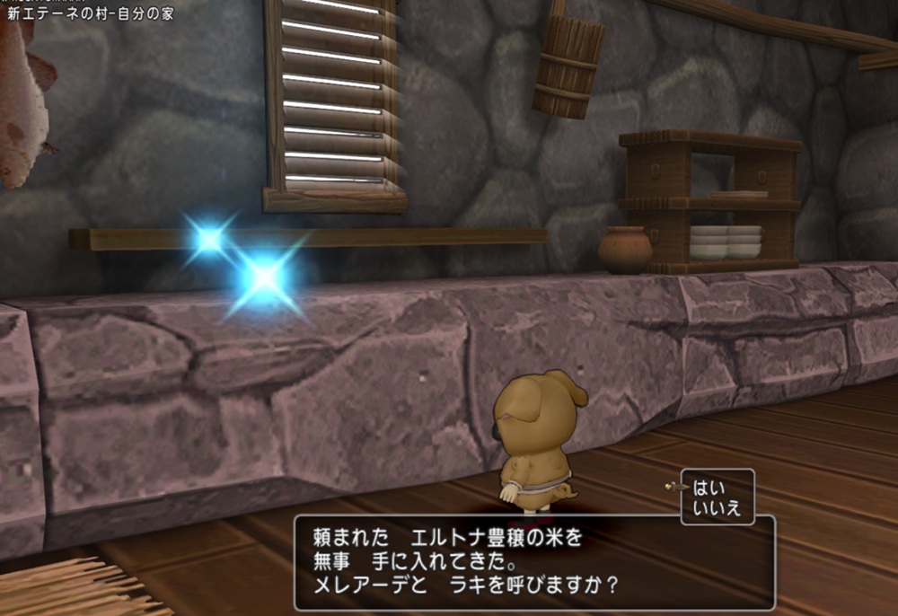 新エテーネの村 自分の家に入り、光っている場所を調べると、ラキの手づくり弁当が手に入るブヒ🐷