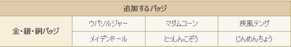 真のモンスター格闘場「バッジじいさん」にて、「バッジ交換券・○」と交換できる「バトルロードバッジ」を追加