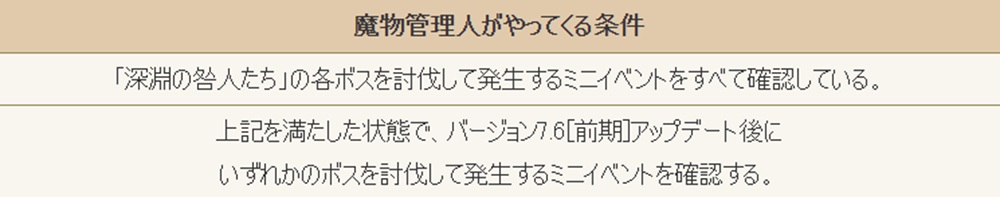 特定の条件を満たすと「魔物管理人」が「レクスルクスの楔」にやってくる