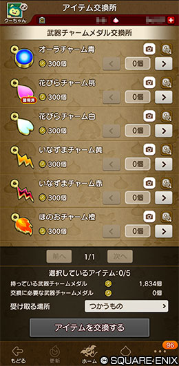 「武器チャームメダル」を集めることで「武器チャーム」と交換できる 300個