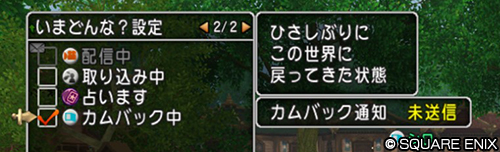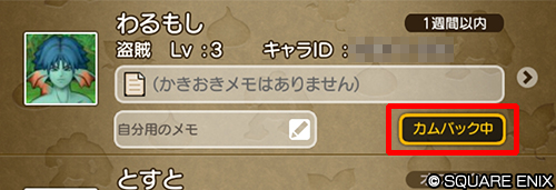 「カムバック中」は、カムバックの条件を満たした方が使える設定