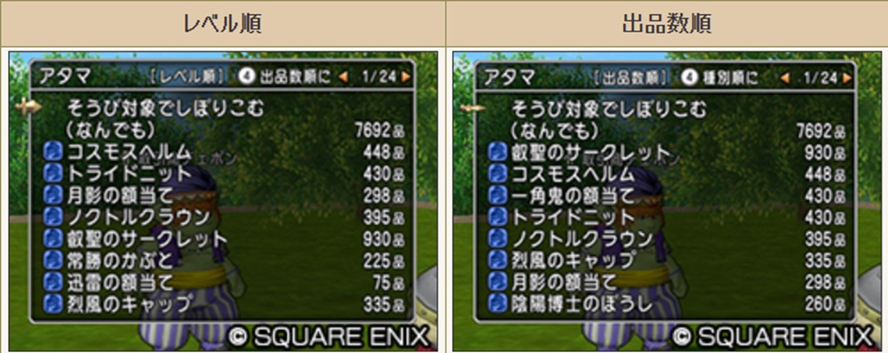 「そうびひん検索」のソート順に「レベル順」「出品数順」を追加