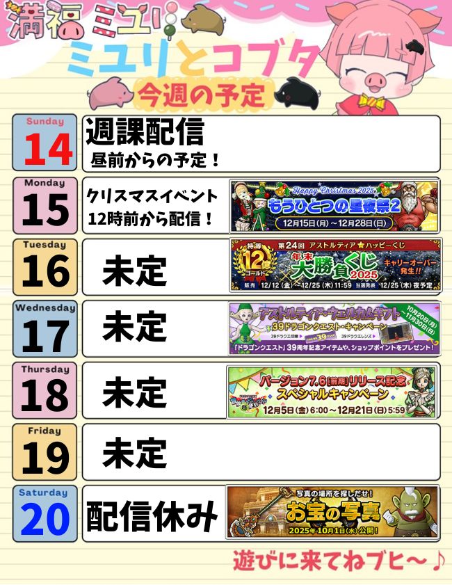 受け取り期間は12月21日(日)23時59分までなので、時間が空いたら初期村宿屋前にいるNPCにアイテムをもらいに行こうブヒ🐷