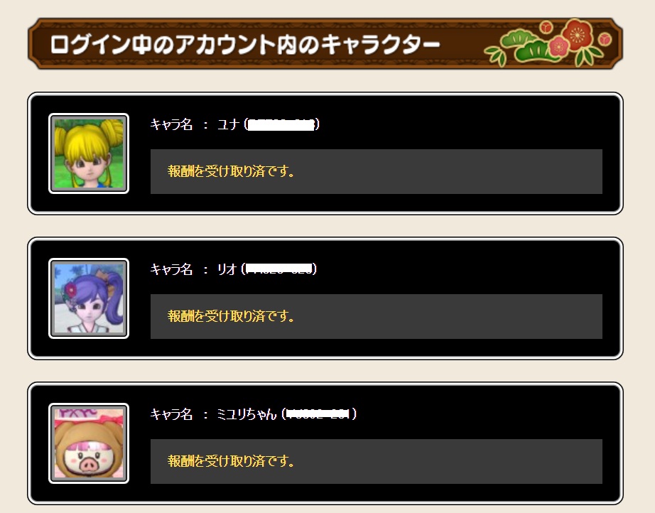 受け取りアイテムの下に、キャラ名が出ているので、スライムかがみもちを討伐していなかったら書いてあるよブヒ🐷