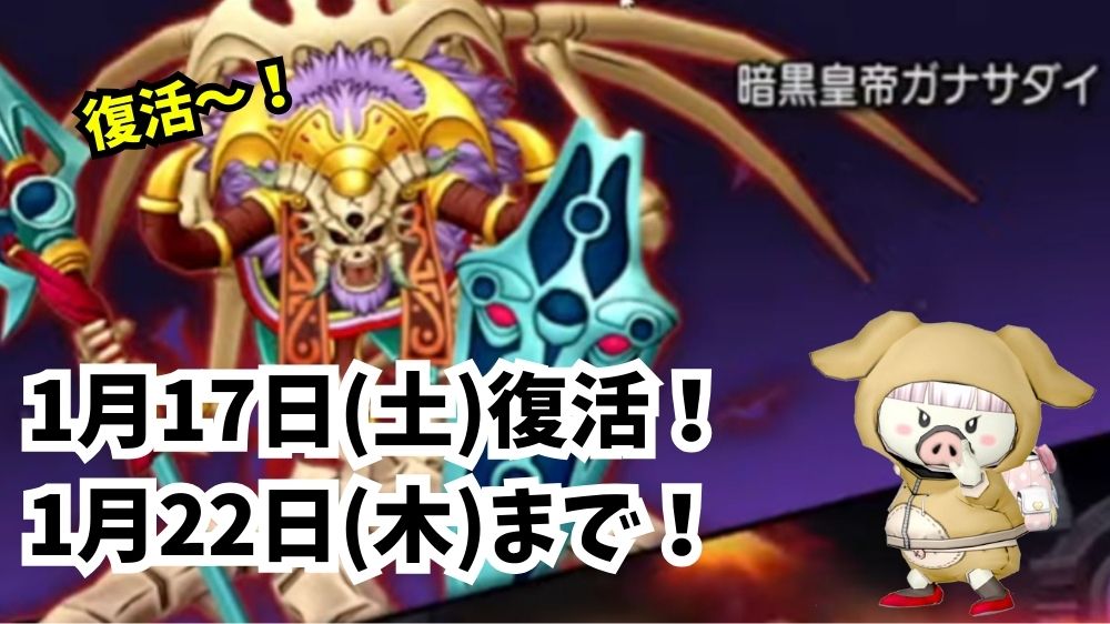 ガナサダイは、月2回、ランダムでお昼12時に復活し、5日後の11時59分に帰るブヒ🐷