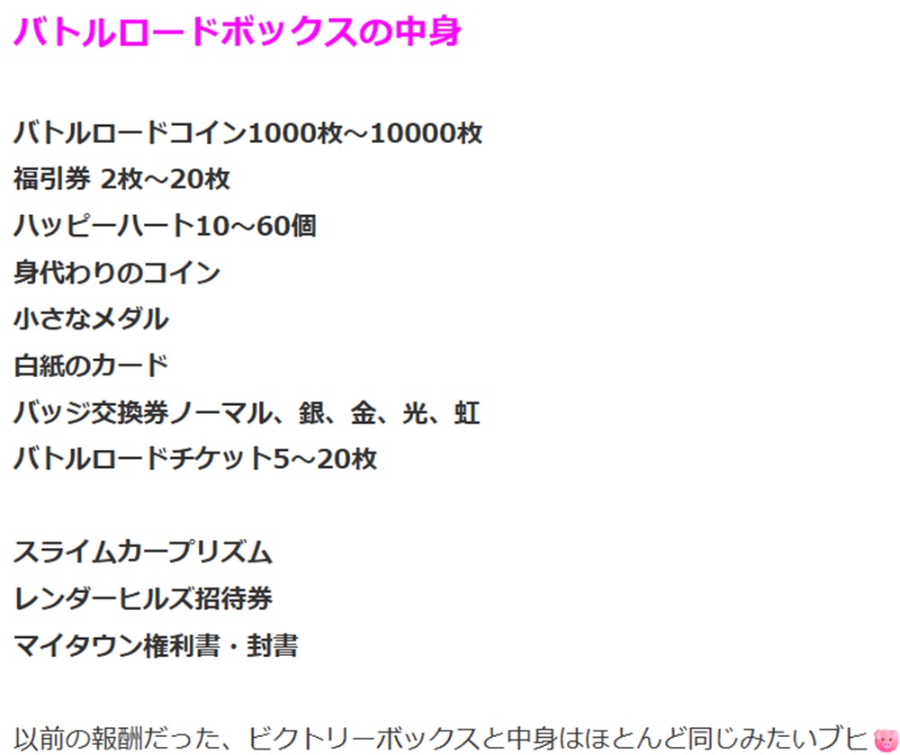 バトルロードボックスの中身はこのようになっているようですブヒ🐷