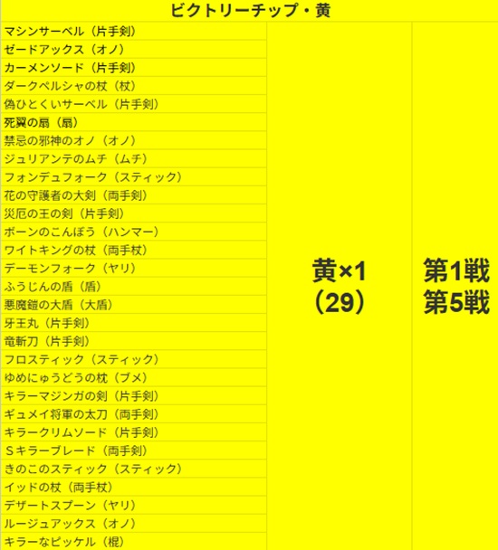 装備に必要なビクトリーチップの内訳ですブヒ🐷