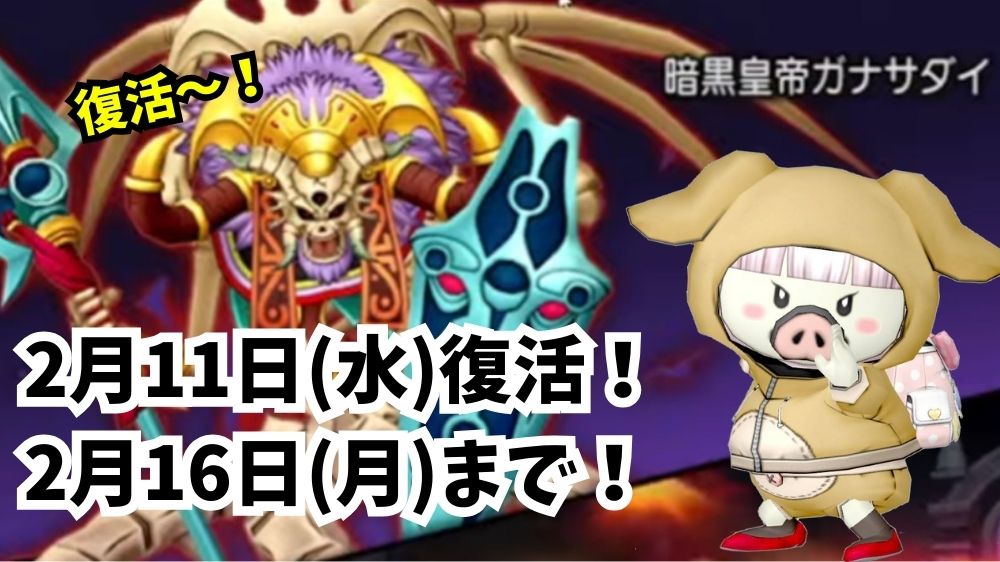 ガナサダイは、月2回、ランダムでお昼12時に復活し、5日後の11時59分に帰るブヒ🐷