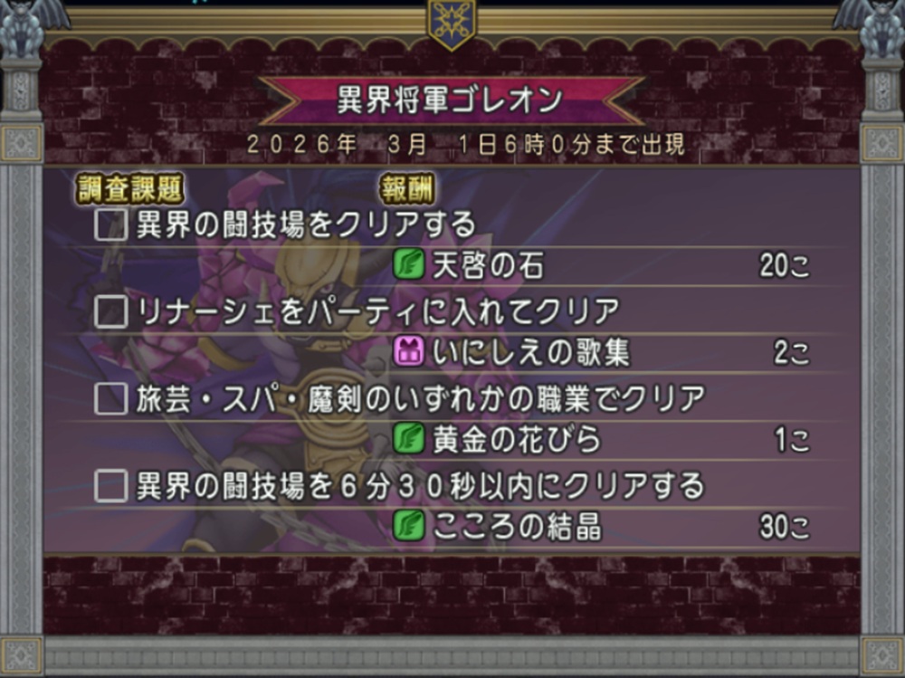 異界の闘技場は3月1日5時59分までなので忘れずにやってねブヒ🐷