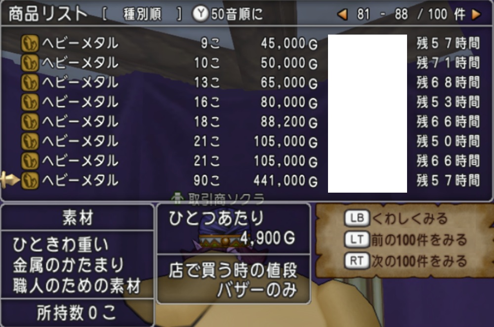 サブの日課 職人依頼をやっていて、最近ヘビーメタル高いなーって…