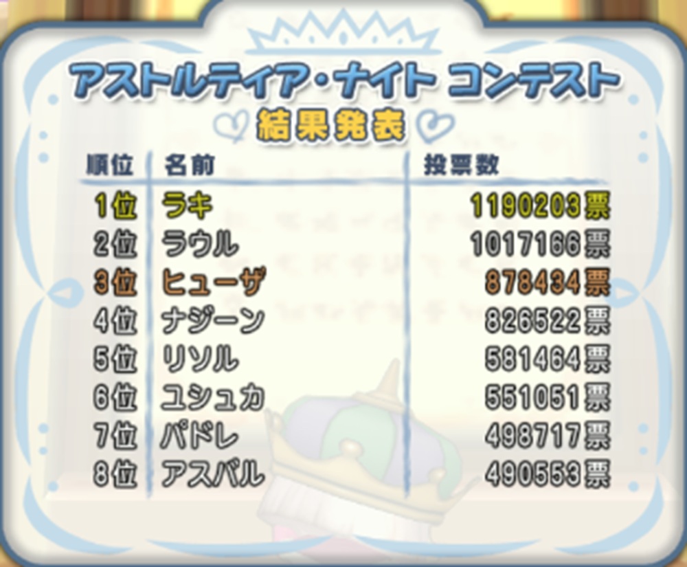 アストルティア・クイーン総選挙の結果が発表されたねブヒ🐷