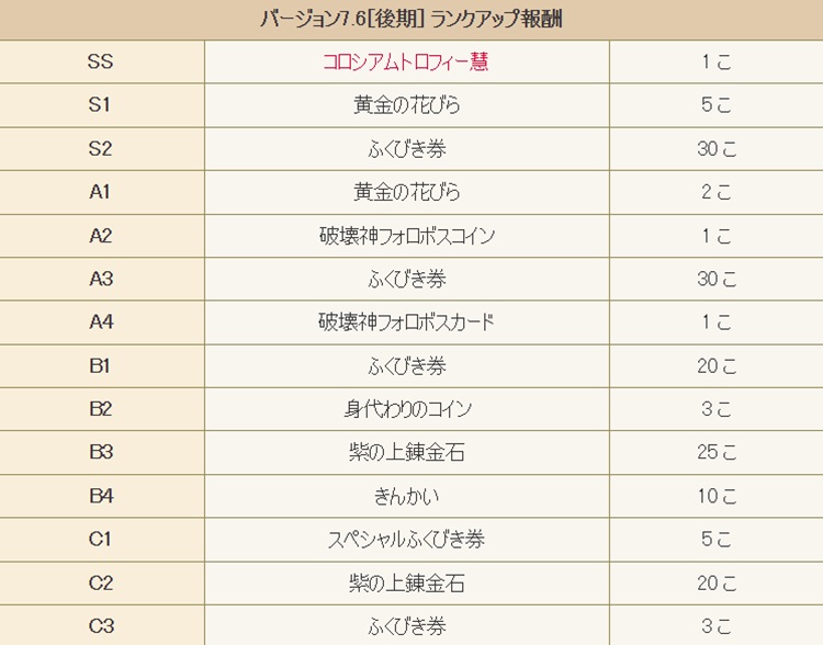 「コロシアム」のランクをリセットし、ランクアップ報酬を更新