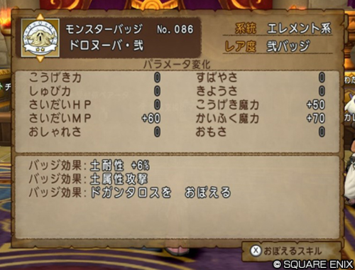 「フリーバッジ・壱」に比べ、装備した際のパラメータの上昇幅が高いほか、「バッジ効果」の向上や変更、覚えられる「とくぎ」「じゅもん」の追加などがある
