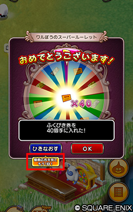モンスター牧場の「ワルぼうのスーパールーレット」にて、「ひきなおす」を利用した後、広告動画を再生することで、さらにもう1回「ひきなおす」を無料で1回行えるようになる