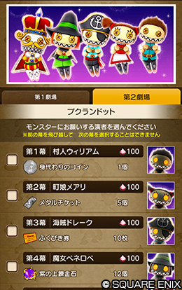 第1幕~最終幕の演者をモンスターに討伐をお願いして、報酬アイテムを獲得できる