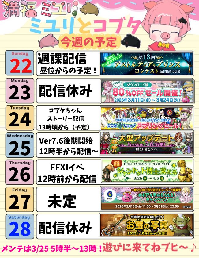 今週はいよいよVer7.6後期が始まるねブヒ🐷